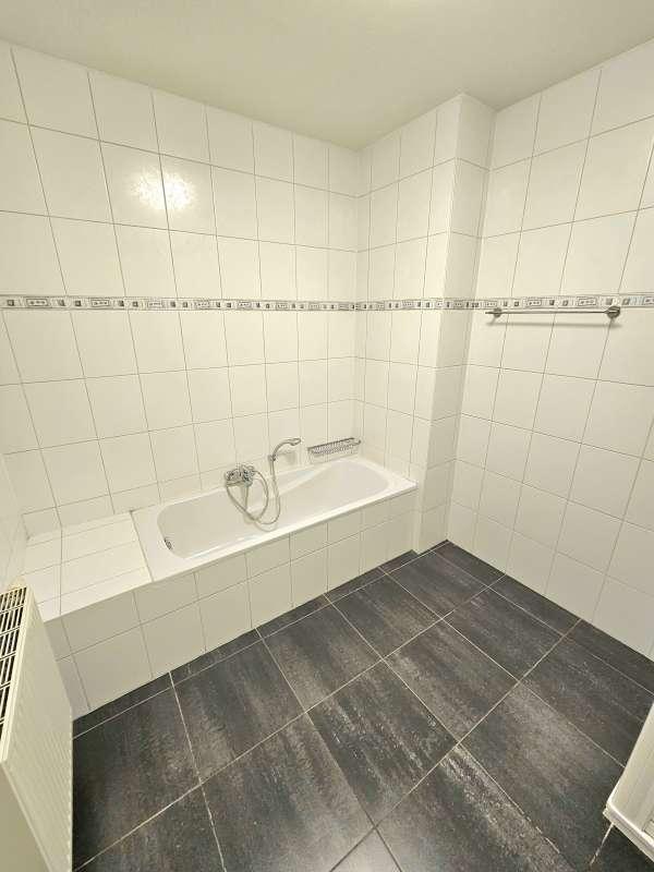 hal met apart toilet, 2 slaapkamers aan de achterzijde, ruime badkamer met ligbad , lavabomeubel en douche. glazen deur naar de woonkamer ( parketvloer)