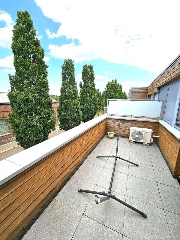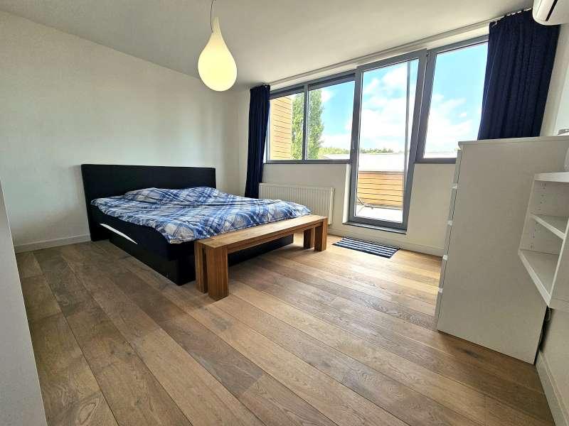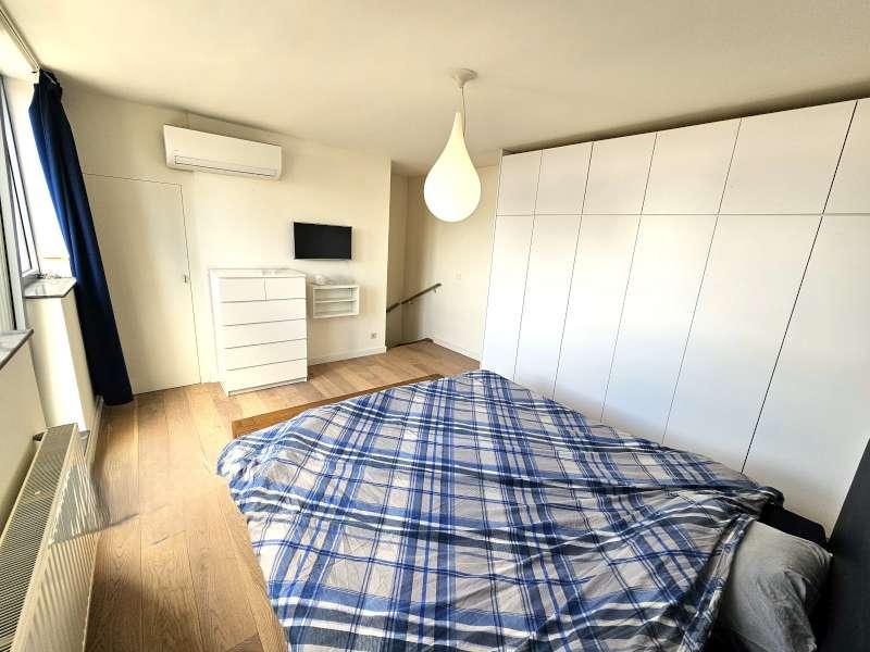 verdieping 2 : hoofdslaapkamer met inbouwkasten, berging CV ketel, airco-unit, toegang tot het mooie dakterras van 15 m²