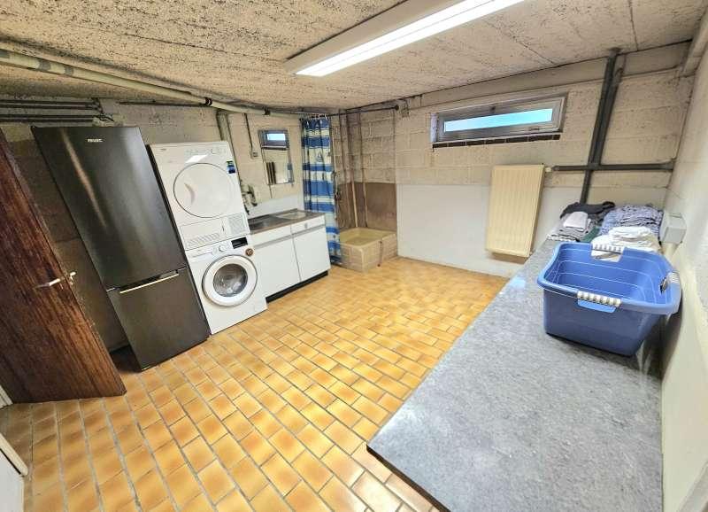 Kelderverdieping: wasplaats, CV ketel ( mazout), 2 hobbyruimtes, garage met automatische sectionaal poort,
