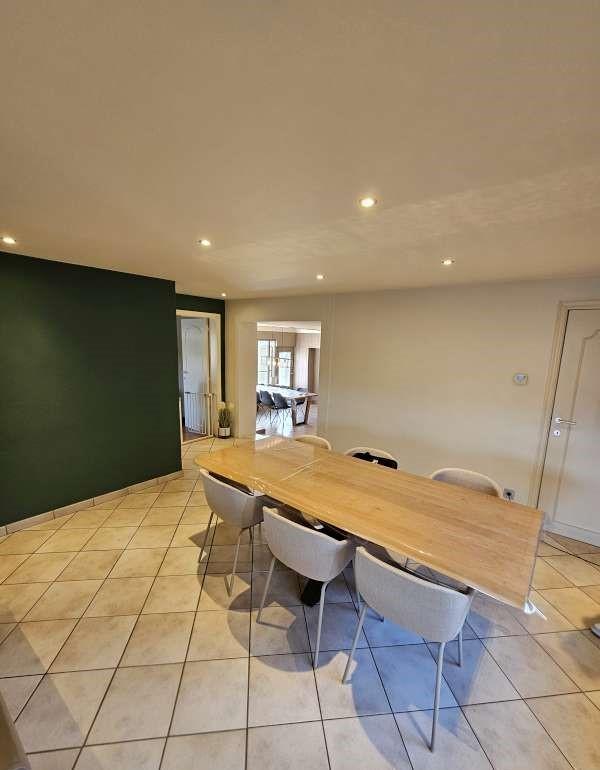 inkomhal, ruime bureauruimte/salon, ruime woon-en eetkamer met een doorgang naar de achterbouw.