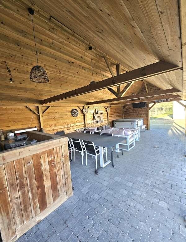 achter de woning ligt een prachtige landelijk houten bijgebouw(voormalige paardenstal)