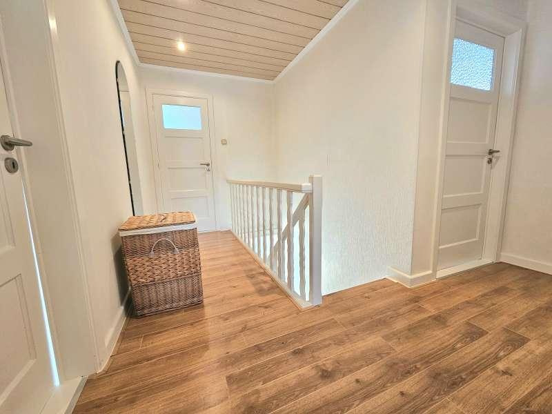 Op de verdieping : nachthal, badkamer met lavabomeubel en hoekbad, 4 ruime slaapkamers