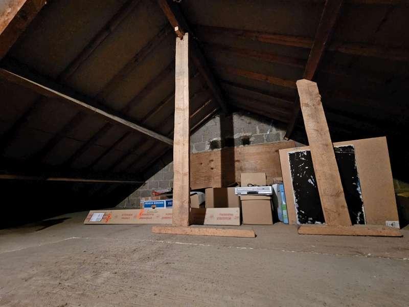 Toegang tot de zolder via een zolderluik ( grote ruimte, mogelijk om bijkomend 2 slpks te creëren 40m² )