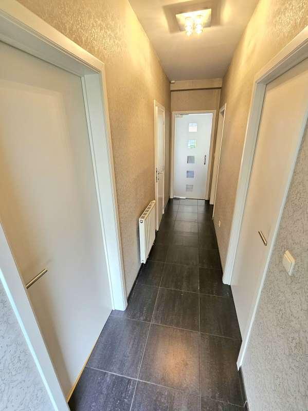 hal met apart toilet, 2 slaapkamers aan de achterzijde, ruime badkamer met ligbad , lavabomeubel en douche. glazen deur naar de woonkamer ( parketvloer)