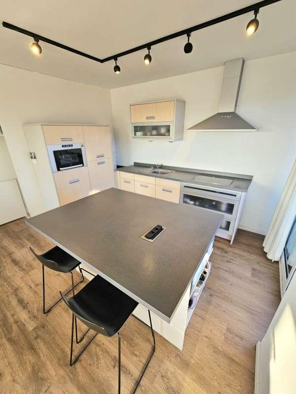 Open keuken met alle comfort ( eiland,vaatwasser op hoogte, oven, kookvuur,..) vanuit de leefruimte heb je direct toegang tot het overdekte terras met prachtig uitzicht over Hasselt.