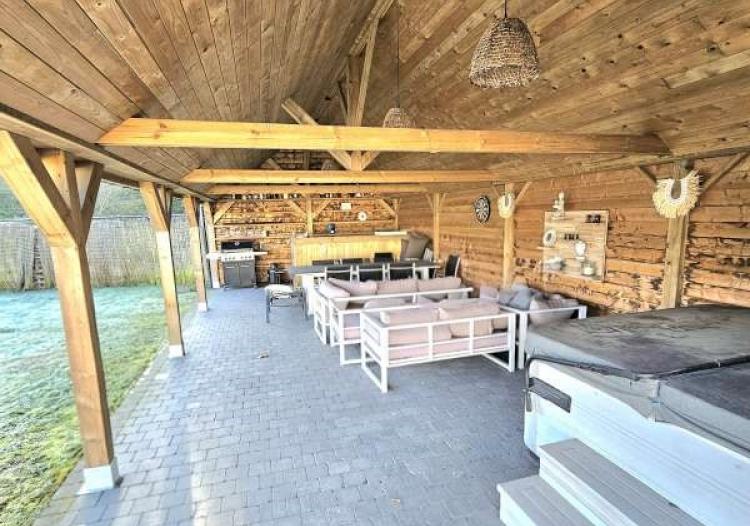 achter de woning ligt een prachtige landelijk houten bijgebouw(voormalige paardenstal)