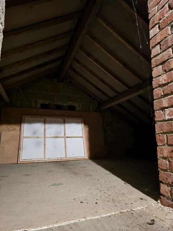 Toegang tot de zolder via een zolderluik ( grote ruimte, mogelijk om bijkomend 2 slpks te creëren 40m² )