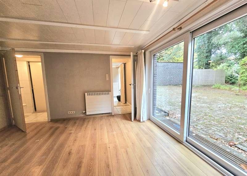 op het gelijkvloers aan de achterzijde is er een extra slaapkamer, met leefruimte, douche en lavabo en een apart toilet.